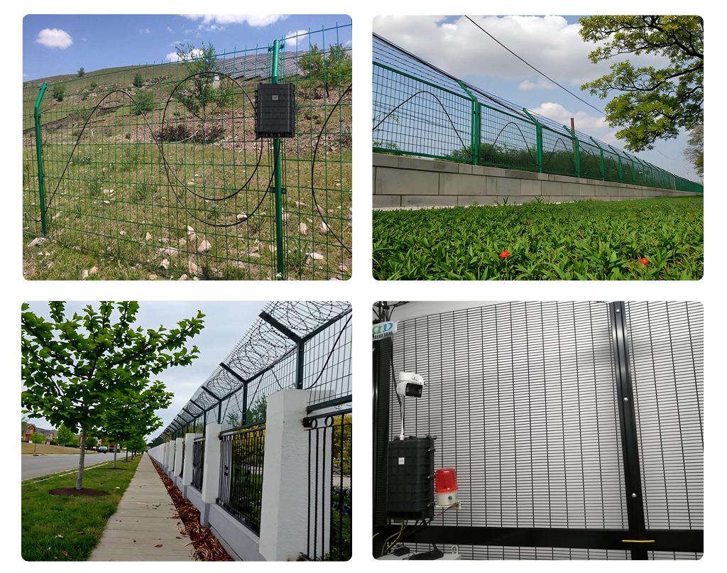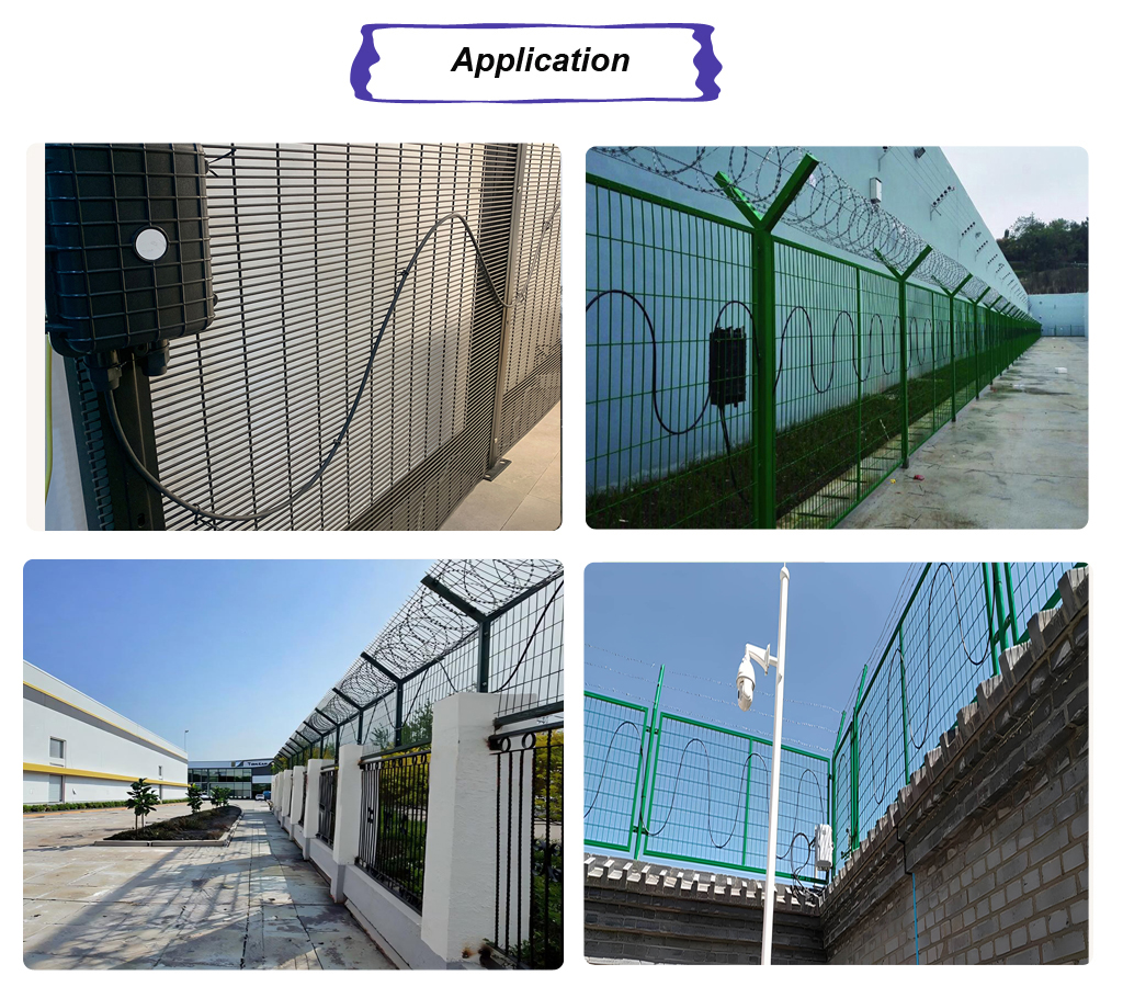 An alarm system that uses vibration to judge intrusion. Its detection element is a long special cable containing electronic components, which can be wound around the fence railings. The vibration of the railings caused by climbing can trigger the detector. The equipment connected with the detector can judge the position, thus giving alarm to the safety watchman.