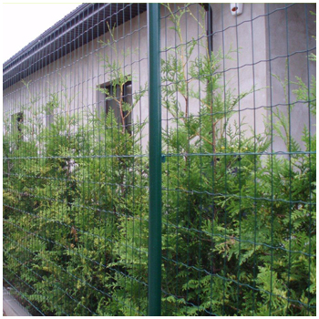Euro fence is also named as a garden fence or road fence. It is include with PVC coated fence rolls and Special post. The length of each roll is 25m or 30m, and the height normally 1.8m or 2.0m. The mesh size normally is 50x50mm and the 50x100mm.The post length is normally 2.3m or 2.5m. The mesh rolls are connected with the post with galvanized or stainless steel wire rings. The installation is very simple and one pair of support post will be put at 25m or 30m intervals. However most of the time it can be erected without additional support.