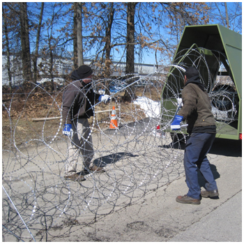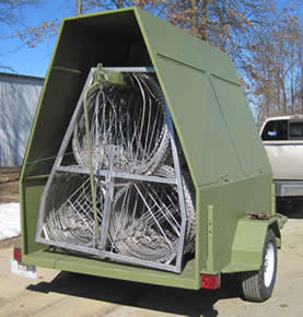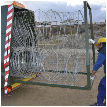 Rapid development barrier also named rapid razor wall, is popular in police and military. It is fastly installed and recycle. 3 or 6 or 10 coils of razor wire connected together by tension bar, tension wire, and a support frame, then there is a special trailer to develop and recycle the wire. The type of finished product is pyramidal.
