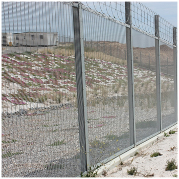 Anti climb fence is a simple but strong enough and high security Panel fence. It mainly include anti climb mesh panels and steel post. The spacing of horizontal wire is 12.7mm, and spacing of vertical wire is 76.2mm, the wire thickness is 4mm, in inch it is 1/2” , 3”, and 8 gauge, so we also call it 358 fence. The mesh panel have some upgraded type now, they are more strong, and nice looking. First is 3D anti climb mesh panel, there are several curves on the panel based on the height of the panel to make it stronger. The second is 2D-plus anti climb fence panel, there are additional horizontal wire every 11 vertical spacing, to make it more flat and stronger. The third type is corromesh anti climb fence, the whole panel is curved like the wave, it is beautiful and more expensive. Thin wire is available to weld 358 fence panels, in order to economic purpose.