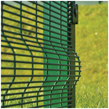 Anti climb fence is a simple but strong enough and high security Panel fence. It mainly include anti climb mesh panels and steel post. The spacing of horizontal wire is 12.7mm, and spacing of vertical wire is 76.2mm, the wire thickness is 4mm, in inch it is 1/2” , 3”, and 8 gauge, so we also call it 358 fence. The mesh panel have some upgraded type now, they are more strong, and nice looking. First is 3D anti climb mesh panel, there are several curves on the panel based on the height of the panel to make it stronger. The second is 2D-plus anti climb fence panel, there are additional horizontal wire every 11 vertical spacing, to make it more flat and stronger. The third type is corromesh anti climb fence, the whole panel is curved like the wave, it is beautiful and more expensive. Thin wire is available to weld 358 fence panels, in order to economic purpose.