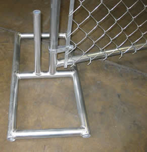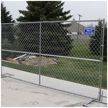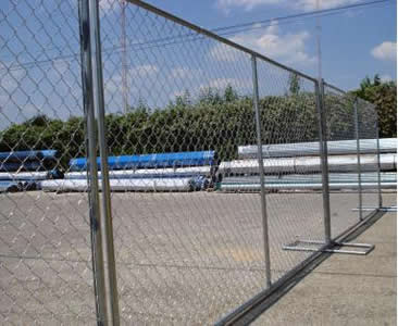 Temporary fence chain link infilled, we first weld the frame with round pipe, and weave the chain link mesh, then weld the mesh fabric into the pipe frame. For the base plate, usually we will use plastic type, and the client can make it concrete at the site or with another type that can filled with water.