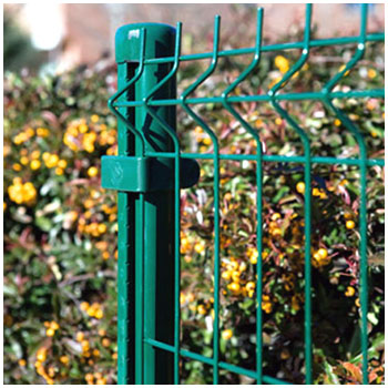 The mesh panel is the simple fence Panel. We use good quality low carbon steel wire or galvanized wire do the welding, then make several curves based on the height of the panels to make the panel rigid and strong. Normally there will be 3cm spike wire left at the top of the panels to make the fence jump over proof as well as good looking. For the surface treatment of the panels we use electrostatic spray or PVC dipped coating. For the post we use galvanized then do electrostatic spray. This type is euro post, so the most popular place is euro country, such as Holland, Slovenia, Czechoslovakia, and other European countries.