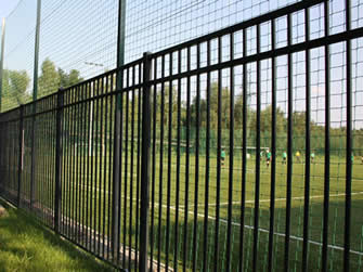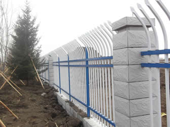 R40 picket fence with 3 rails. Decorative rings and scrolls can be added for an even more ornamental look.